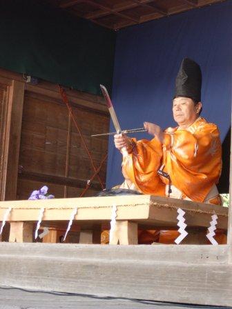 そして、包丁式では、食材に手を触れず、包丁のみで食材を切る儀式が行われました。