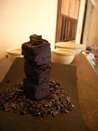 炭をバーナーで焼き、艶を出し、インテリアに。水道の蛇口は、サンポールで錆びを出し、