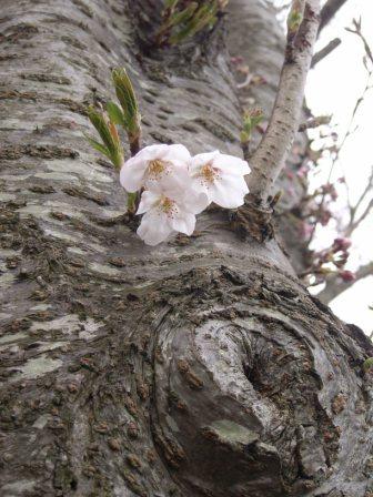 花や実を付けるのですが、桜は、花→葉→実の順序で、紅葉して葉が一枚もない状態から、