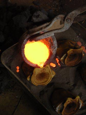 金属が高熱によって溶かされ、鋳型に流し込む瞬間は、まるで水のよう!